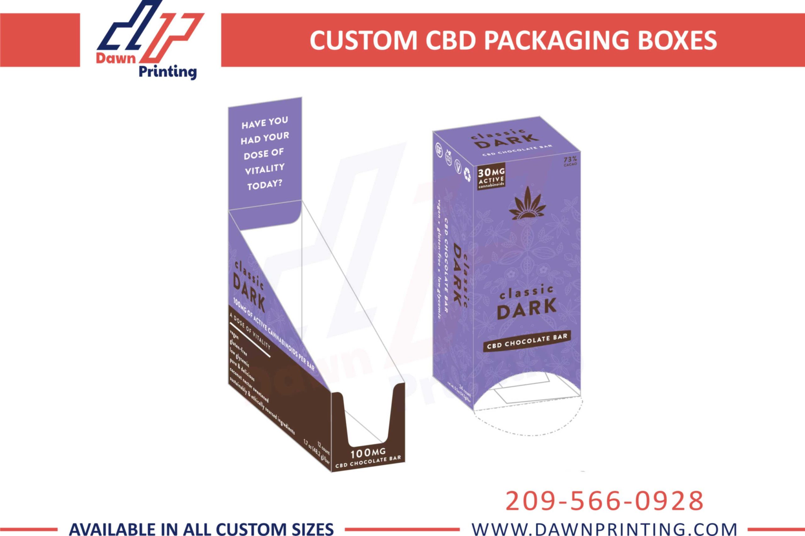 Make our custom CBD boxes yours and give your customers a whole new experience. If you want your customers to buy YOUR products, then you need quality packaging from Dawn Printing. These custom CBD boxes are made flawlessly by professional hands. Their perfect design contributes to their strong structure as well as their beauty. We offer cardstocks of the quality that you won’t find anywhere else. Their quality aids in high-resolution artwork that attracts eyes to it. Besides, you can make custom choices of designing your own custom CBD boxes for your brand. The final design of the boxes will be up to your wishes. We’re looking forward to getting your order for top-tier wholesale CBD packaging boxes at amazing wholesale rates. Give us a call at 209-566-0928. [/vc_column_text][/vc_column][/vc_row]