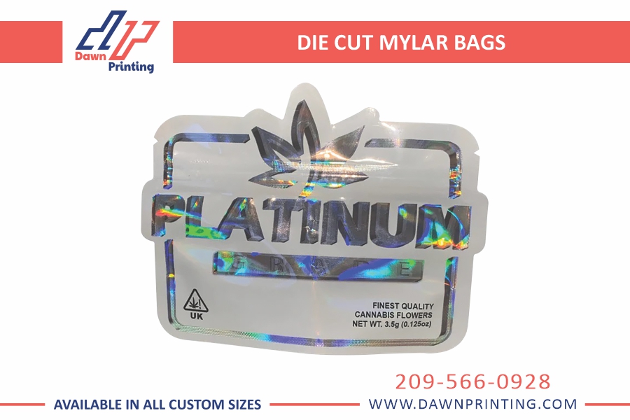 Our premium Die Cut Mylar Bags are the most effective packaging solution that guarantees excellent quality and flexibility. With our skilled group, Dawn Printing offer layout help that will help you create appropriate packaging for your merchandise. Whether you require wholesale portions or short-run boxes. Our dedication to customer delight shows in the way we provide free templates to streamline the layout process. Plus, we provide rapid turn-around times and loose transport to ensure your orders arrive right away. With our die cut mylar bags, you may exhibit your products in fashion while also taking advantage of our comprehensive offerings.
