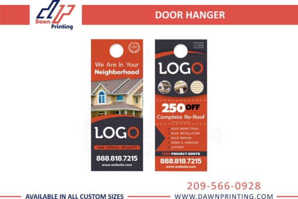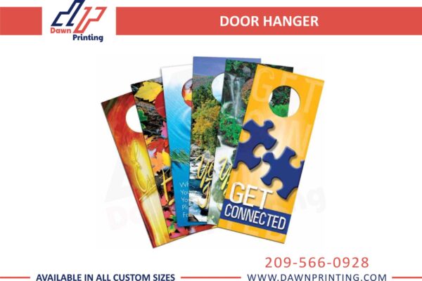 Custom door hangers are what your business requires to be observed. To get them in the highest possible quality, contact Dawn Printing at 209-566-0928. We will make custom door hangers for you taking care of the quality. For that, you can select one from our catalog of stocks that you want your door hangers to be made of. The cardstocks we have are all highly printable, full of strength, and full of amazing features. The proficient designers of Dawn Printing make flawless designs of custom door hangers to give them a nice and smooth look with a stable structure. To add beauty to them, we have many design techniques that will make your printing look mind-blowing. To get your amazing door hangers from us, give us a call now and you will get a flat 20% off on wholesale door hanger printing.