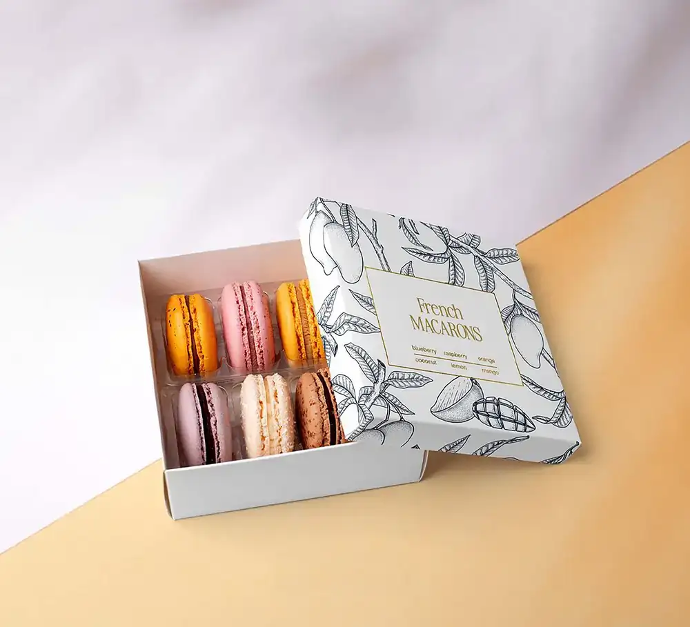 Introducing our Custom Macaron Boxes, where style and customization meet to beautify the presentation of your delectable macarons. Whether you want wholesale portions or short-run boxes, we’ve got the precise solution to satisfy your necessities. Enjoy the ease of our free templates, which make it easy to customize your custom macaron boxes. And it truly is no longer all—Dawn Printing offer loose shipping, making sure your order arrives right away and intact. With our layout help, our skilled team will assist in bringing your creative vision into existence. Rest confident; our commitment to satisfactory results shines through in our top-rate materials and professional craftsmanship.