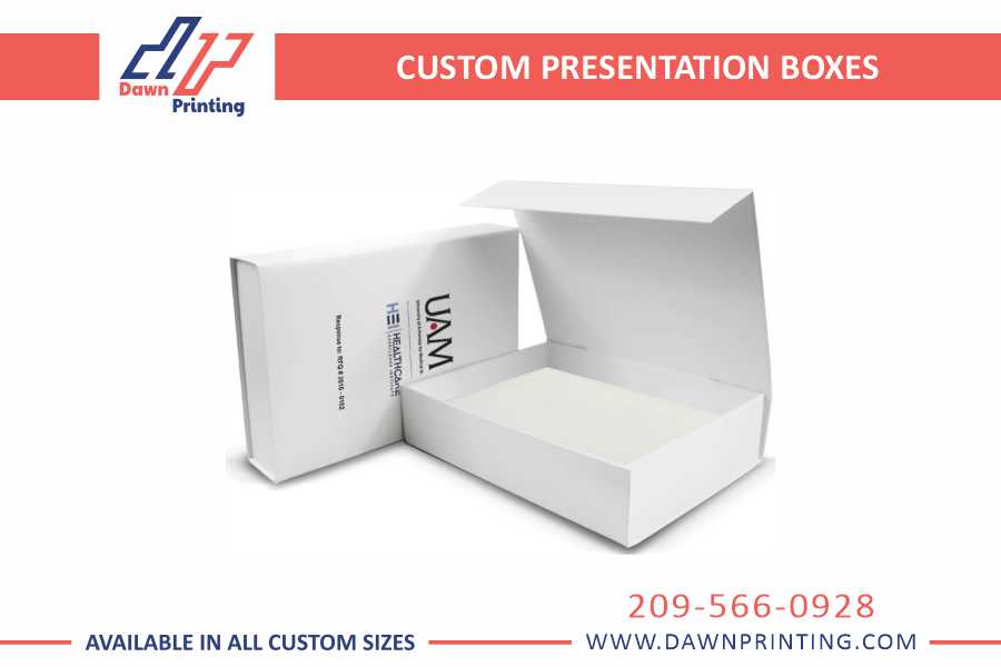 Custom Presentation Boxes, your go-to vacation spot for top-notch packaging answers. Whether you require wholesale quantities or short-run packaging boxes, Dawn Printing got the knowledge to satisfy your wishes. Our complete services include unfastened templates as useful resources in your customization process. With our layout help, we assist you in creating stunning presentation boxes that captivate your audience. We are dedicated to handing over pinnacle-notch pleasure, thanks to our experienced crew’s meticulous craftsmanship. Enjoy the convenience of loose delivery, making sure your boxes reach you right away. Plus, our fast turn-around time guarantees that your deadlines are met.